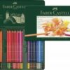 Faber-Castell Polychromos colored pencils are high-quality, professional artist-grade products. They feature top-quality lead with excellent pigment and lightfastness, offering highly opaque colors. The lead diameter is 3.8 mm. Colors can be dissolved with turpentine.