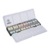 Cotman watercolors in a compact case. The set includes 14 half pans and a travel brush, along with space for mixing colors. It’s perfect for taking on the go.